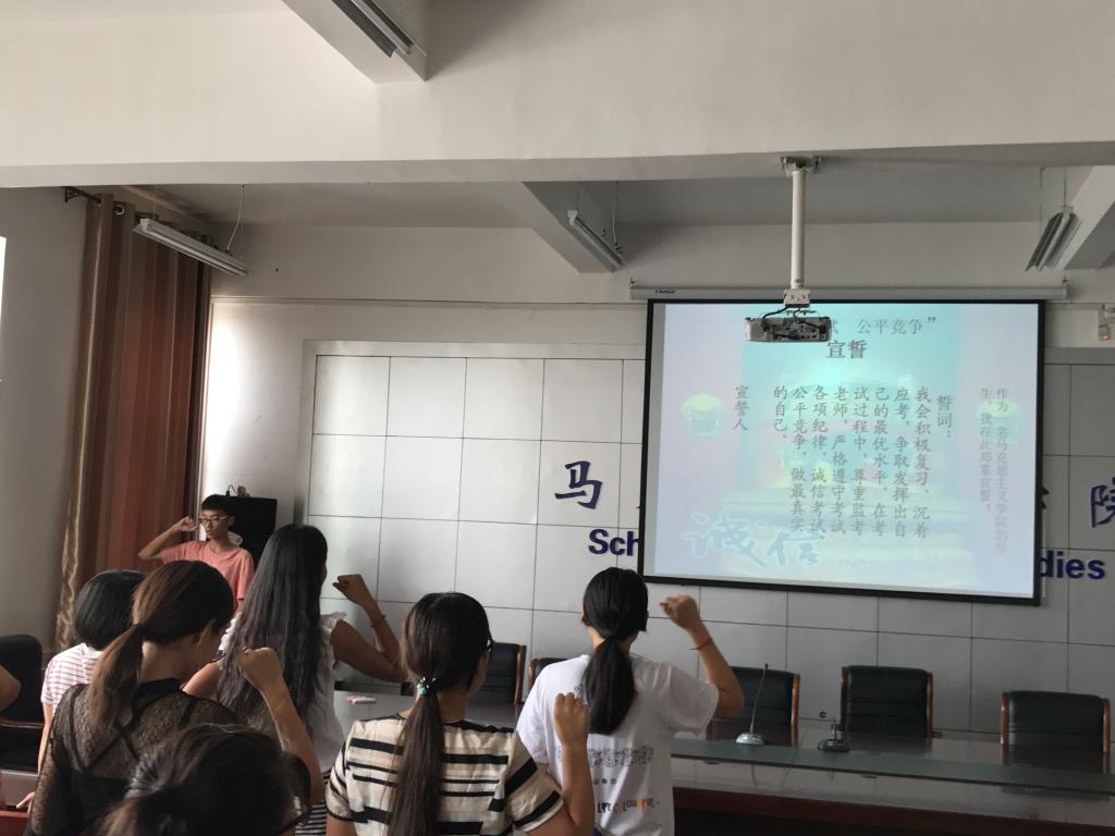 随后,在学生代表的带领下,在场的所有同学进行了“诚信考试,公平竞争”的宣誓仪式,表示自己一定会在考试过程中,尊重监考老师,严格遵守考试各项纪律,诚信考试、公平竞争,做最真实的自己。