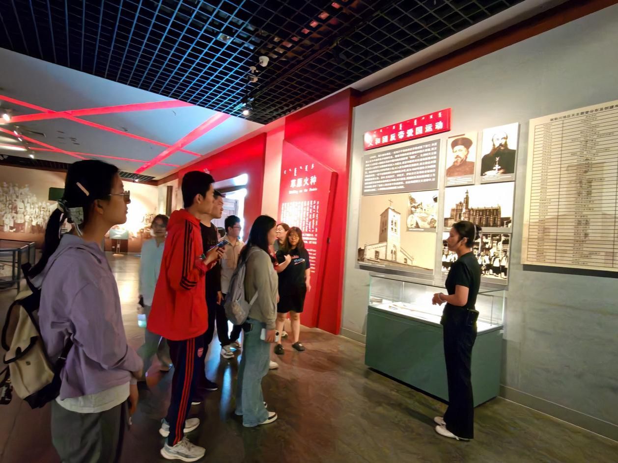 为深入贯彻落实习近平总书记关于“大思政课”的重要指示批示精神,扎实提升高校思想政治理论课教学实效,英国365集团公司习近平新时代中国特色社会主义思想概论教研室于2025年6月7日带领学生赴包头市敕勒川博物馆开展实践教学活动。本次实践教学按照学院统一部署,由杨哲、张子超老师带队,共计80余名学生参加。