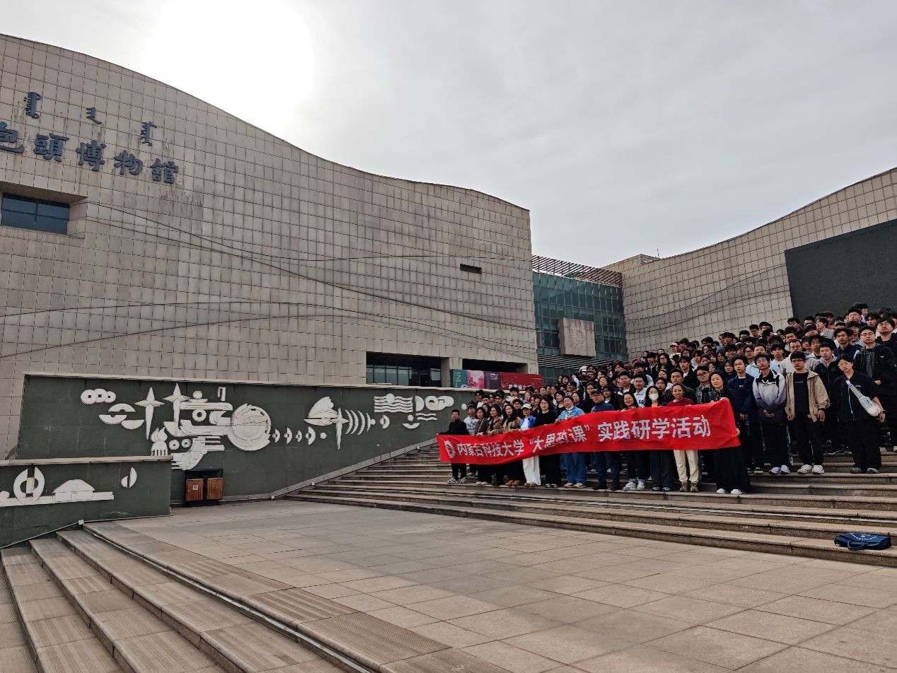 为了深入推进我院《中国近现代史纲要》课程教学的实效性,引导青年学生厚植爱国情怀,铸牢中华民族共同体意识。中国近现代史纲要教研室按照《中国近现代史纲要》课程教学大纲的要求和实践教学计划的安排,2026年4月12日上午,由叶后坡、李丽丽、张志环、孙亭、张丽、苏爱、孟曦、杨诗敏、郝志芳、王一民、李卓11位教师带领228名学生前往包头市博物馆开展“大思政课”实践研学活动。