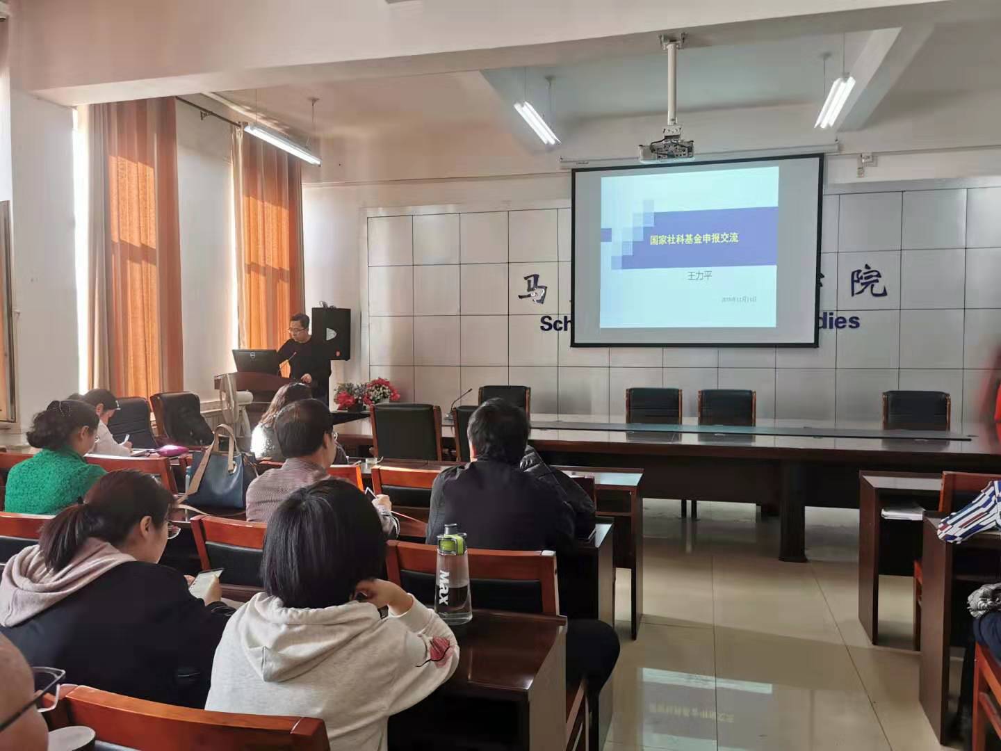 动员会邀请文法学院王力平教授作了题为“国家社科基金项目申报交流”的辅导报告。王力平结合自身多年科研工作经验及国家社科基金项目申报体会,着重介绍了选题、论证的重要性,他建议要认真研读申报指南,严格按照申报规范要求填写申请表。