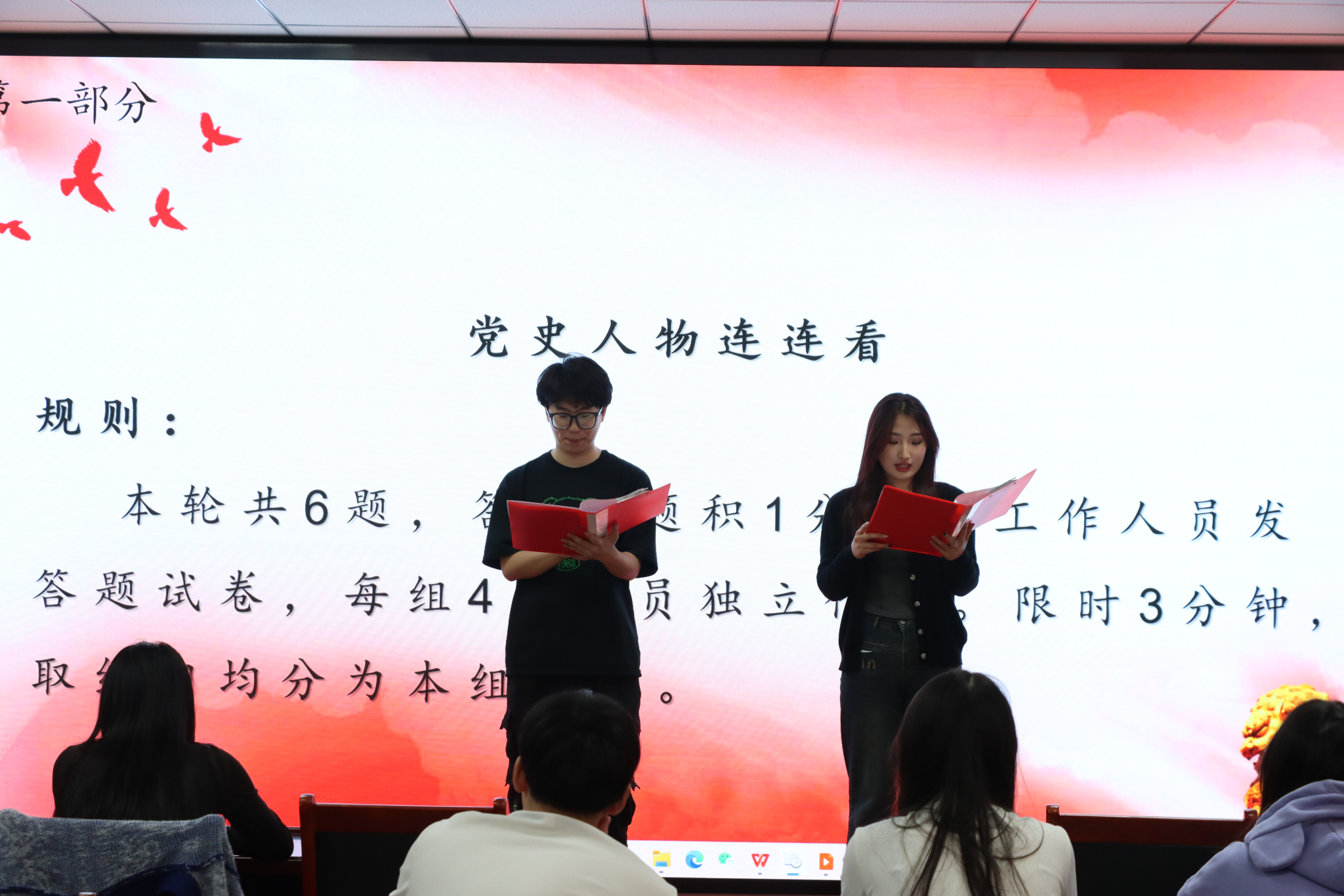 知识竞赛吸引了广大学生积极参与。经初赛选拔,共有5支队伍进入决赛。知识竞赛内容涵盖铸牢中华民族共同体意识、党的二十大精神、全国两会、党史知识、感动中国人物等多个方面。决赛分为“党史人物连连看”、“关键词抢答”、“趣味知识拓展”、“党史问答接力”等环节。