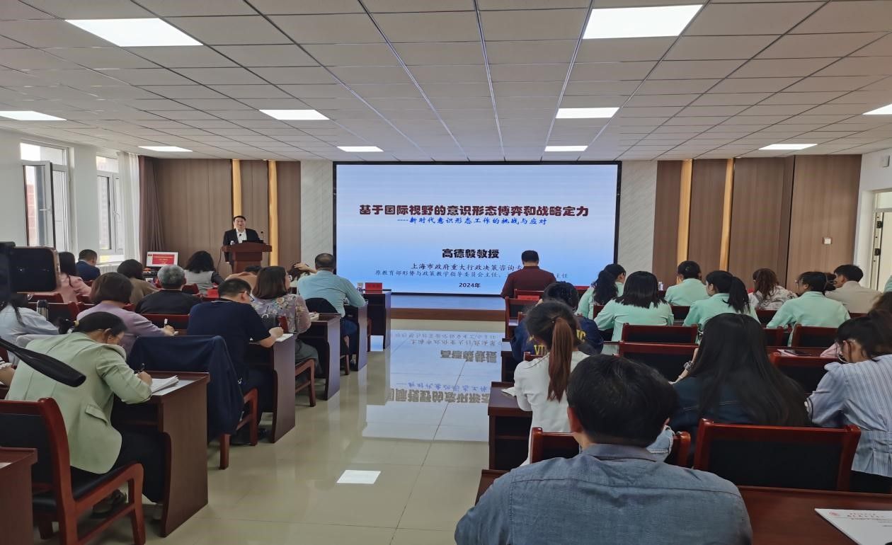 讲座邀请上海市政府重大行政决策咨询专家、上海市思政课教学指导专家委主任、上海市教材审查和评价委员会主任委员高德毅教授主讲,讲座题目是《基于国际视野的意识形态博弈和战略定力》。高德毅教授从意识形态的概念、国际视野下的意识形态博弈、战略定力和政治责任等几个方面做了深入分析和讲解,讲座深入简出、生动精彩,引发了现场师生的强烈共鸣。