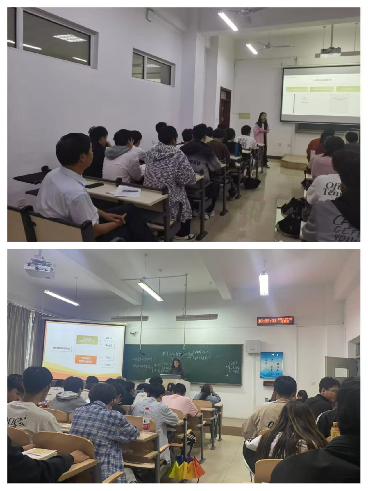 现场听课中,调研组专家分为三组随机抽取了四位老师进行了现场听课,分别是李蕊的《马克思主义基本原理》、武香慧的《马克思主义基本原理》、杜雨的《马克思主义基本原理》、苏爱的《中国近现代史纲要》。