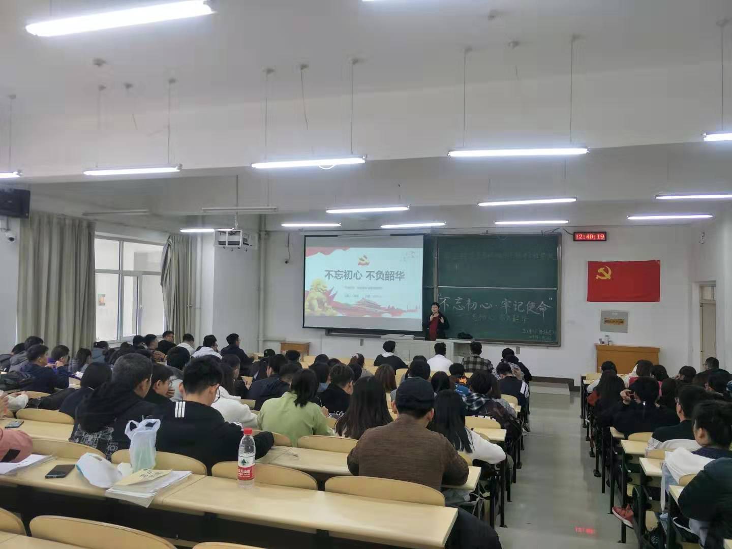 11月11日中午12:40,本科生党支部书记陈伟在逸夫楼G303作了题为《不忘初心、不负韶华》的主题教育专题党课。“三部共建”单位英国365集团公司本科生党支部、矿业与煤炭学院学生第一党支部以及化学与化工学院学生第一党支部全体党员及入党积极分子共计100余人聆听党课。