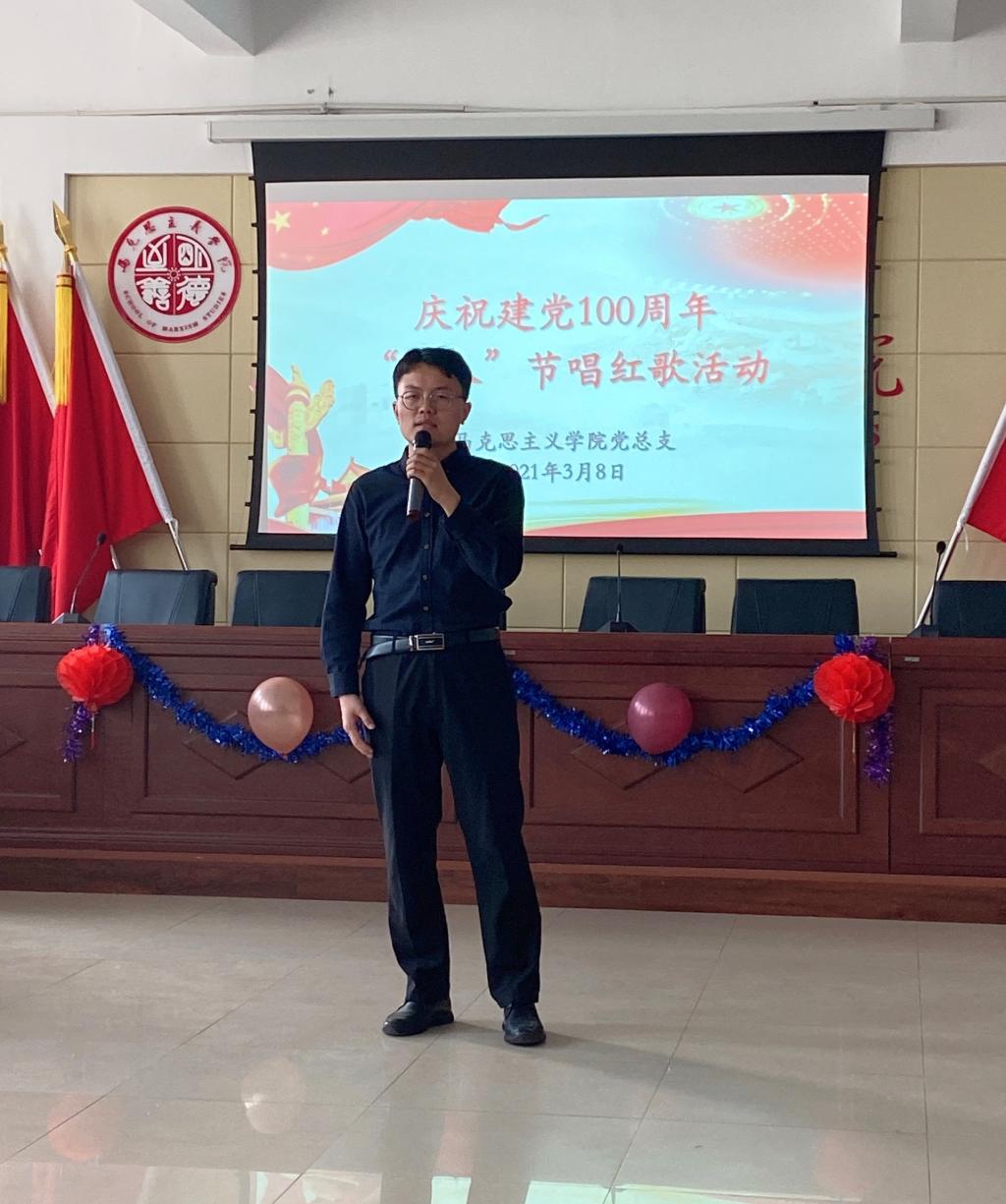 教职工们热情如火,红歌唱响半边天。各系部分别演唱了《没有共产党就没有新中国》、《我和我的祖国》、《学习雷锋好榜样》和《美丽的草原我的家》,杨永旺书记献唱了《北京的金山上》,焦刚等老师也分别演唱了《旅行》、《火红的萨日朗》等歌曲,大家用歌声赞颂中国共产党,传递出爱党爱国正能量。