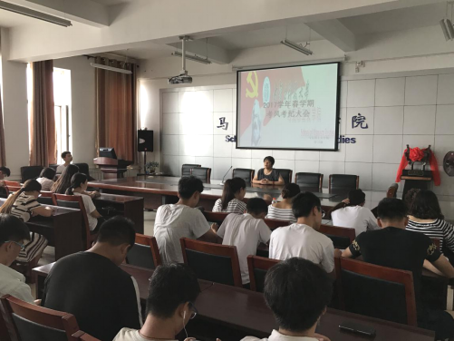 7月5日上午10时,英国365集团公司2017学年春学期考风考纪大会在腾飞楼C517召开,本次考风考纪大会的主题是“诚信考试,公平竞争”。学院辅导员及2016级全体本科生参加了此次会议。