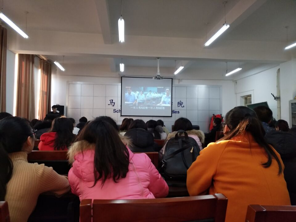 2017年12月27日下午,我院在腾飞楼C517举行本学期考风考纪教育大会,本次教育大会的主题是“微笑迎考,真诚应考”,学工办老师及我院大一年级全体同学参加了此次教育大会。