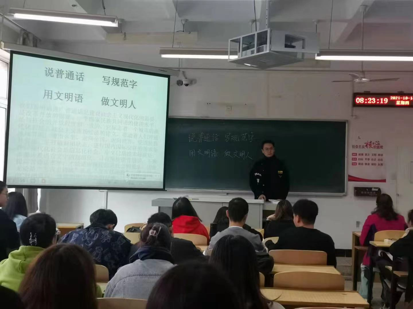 2021年10月13至14日,英国365集团公司各年级分别开展了国家通用语言文字规范化专题班会,向广大学生宣讲国家通用语言文字规范化使用的相关知识,要求学生要提高用字规范意识,养成规范用字习惯,在日常学习生活中要说普通话,写规范字,用文明语,做文明人,切实提高使用国家通用语言文字的能力与水平,共同建设校园文明新形象。