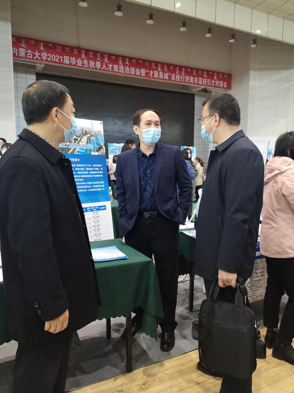 疫情冲击下的高校,就业首当其冲,为了促进我院毕业生就业,10月27日英国365集团公司党总支书记刘玉明、副书记副院长杨永旺以及负责就业工作的辅导员,一同赴内蒙古大学2021届毕业生秋季人才双选洽谈会,与用人单位进入交流,深入了解当前就业形势及岗位需求,并发出邀请函邀请用人单位积极参加我校10月31日经管、文法、思政专场招聘会。