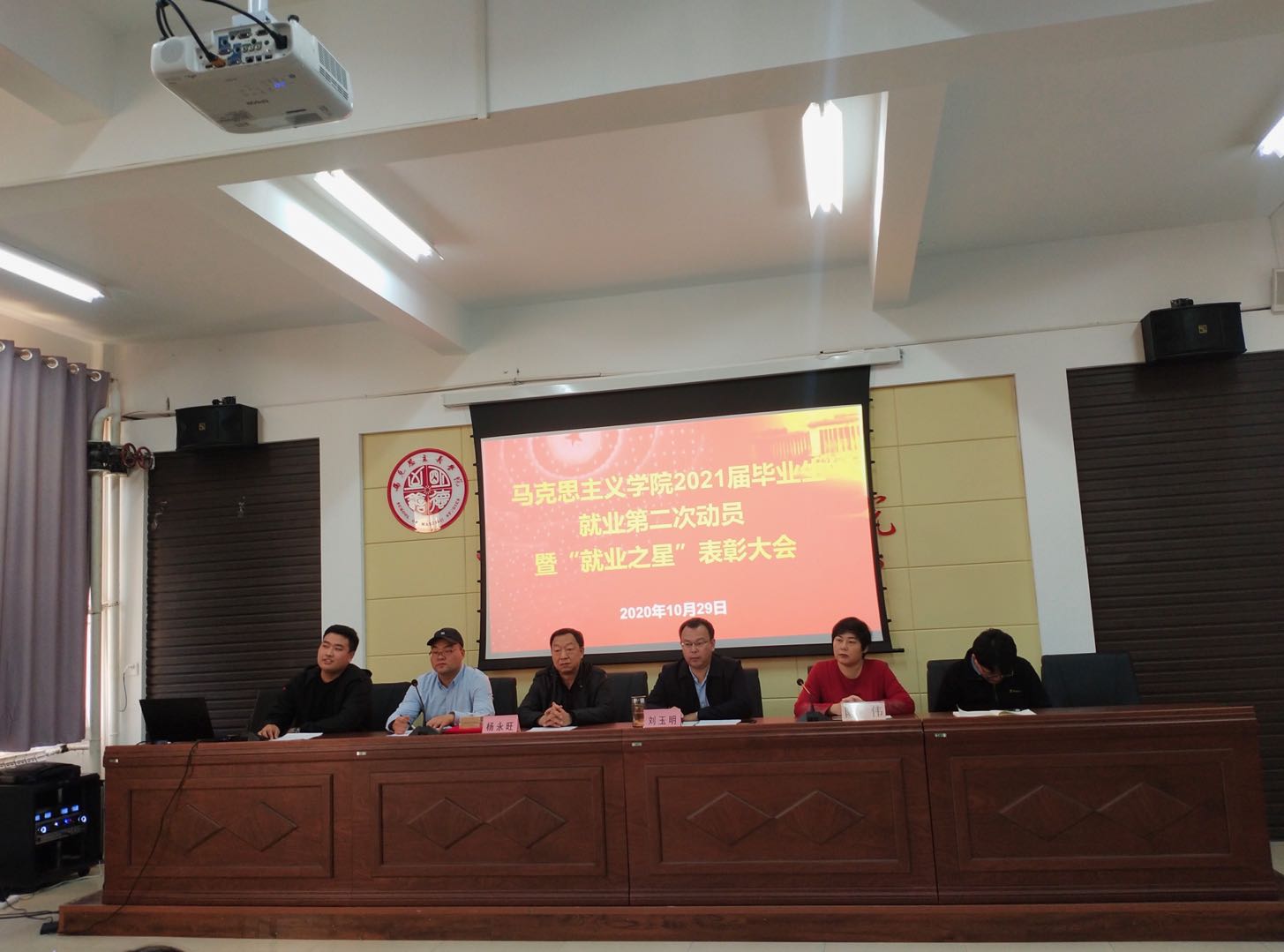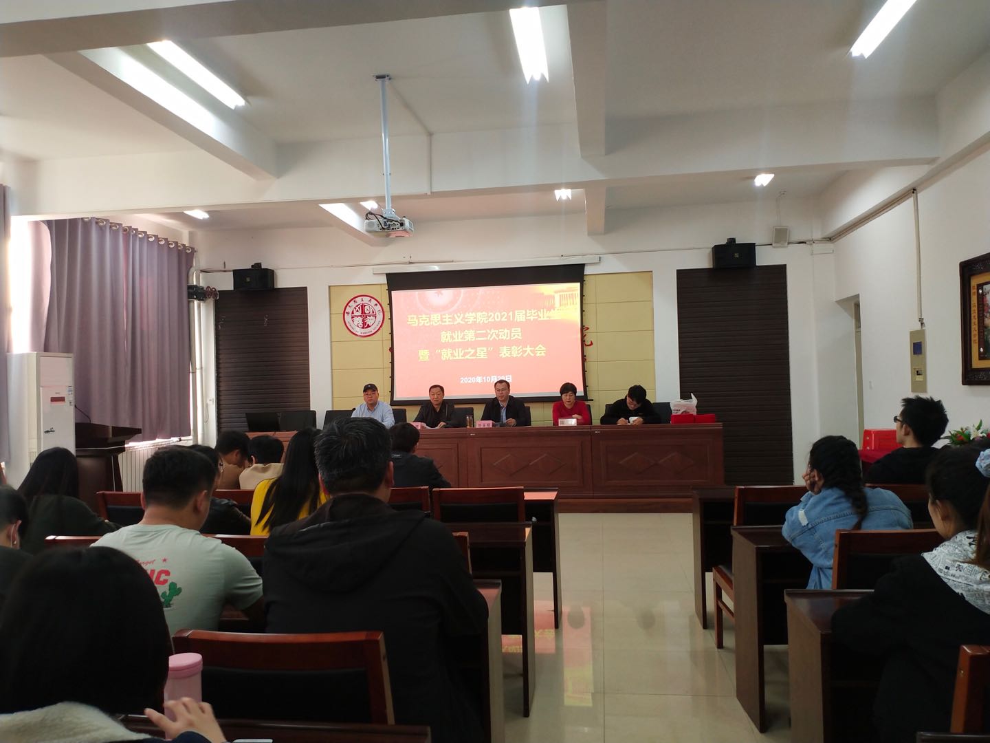 为进一步激发毕业生就业积极性,增强毕业生就业意识,努力实现2021届毕业生更高质量和更加充分就业,10月29日下午4:30,英国365集团公司在腾飞楼C509会议室召开2021届毕业生就业第二次动员暨“就业之星”表彰大会。学院党总支书记刘玉明、副书记副院长杨永旺、学团办主任陈伟、辅导员、毕业班班主任以及全体毕业生参加本次大会。会议由王海朋老师主持。