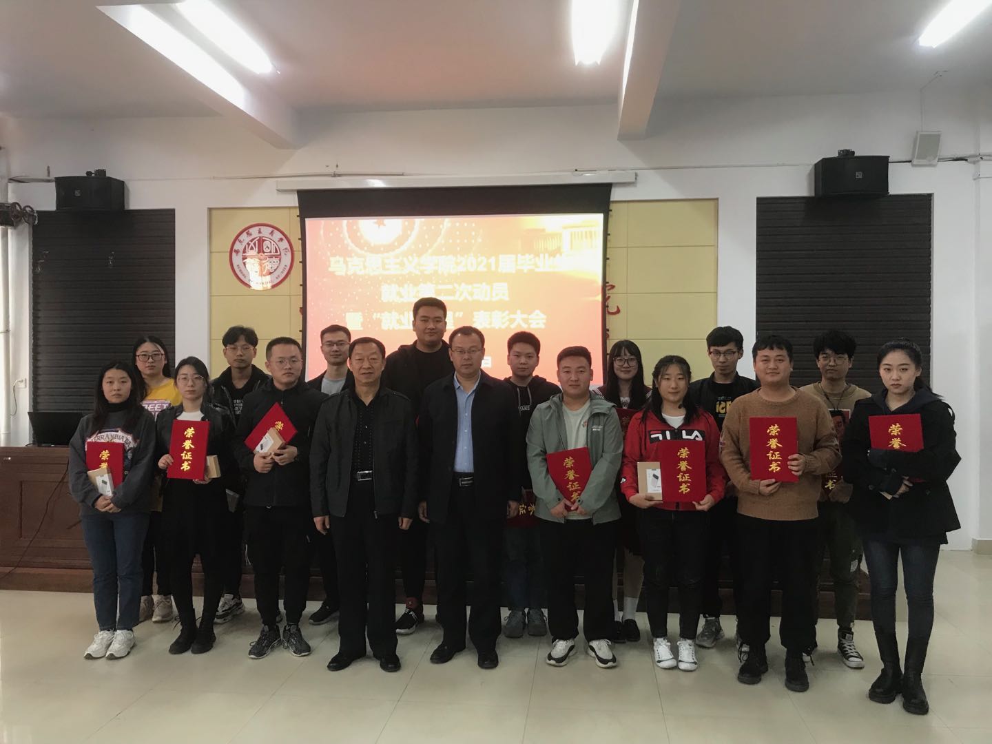 学院党总支书记刘玉明强调,不论考研还是就业,同学们一定要坚定信心,充满斗志,保持良好的心态,不断完善提高自身的综合素质和能力,并鼓励同学们做好就业的相关准备,大胆尝试,勇于就业。副书记、副院长杨永旺介绍了学校专场招聘会的相关安排,并宣读“就业之星”表彰名单。接下来,学院领导为“就业之星”颁发获奖证书和纪念品,并号召未就业的同学向受到表彰的同学学习,以他们为榜样,不断努力,奋勇争先,争取早日找到理想的工作。