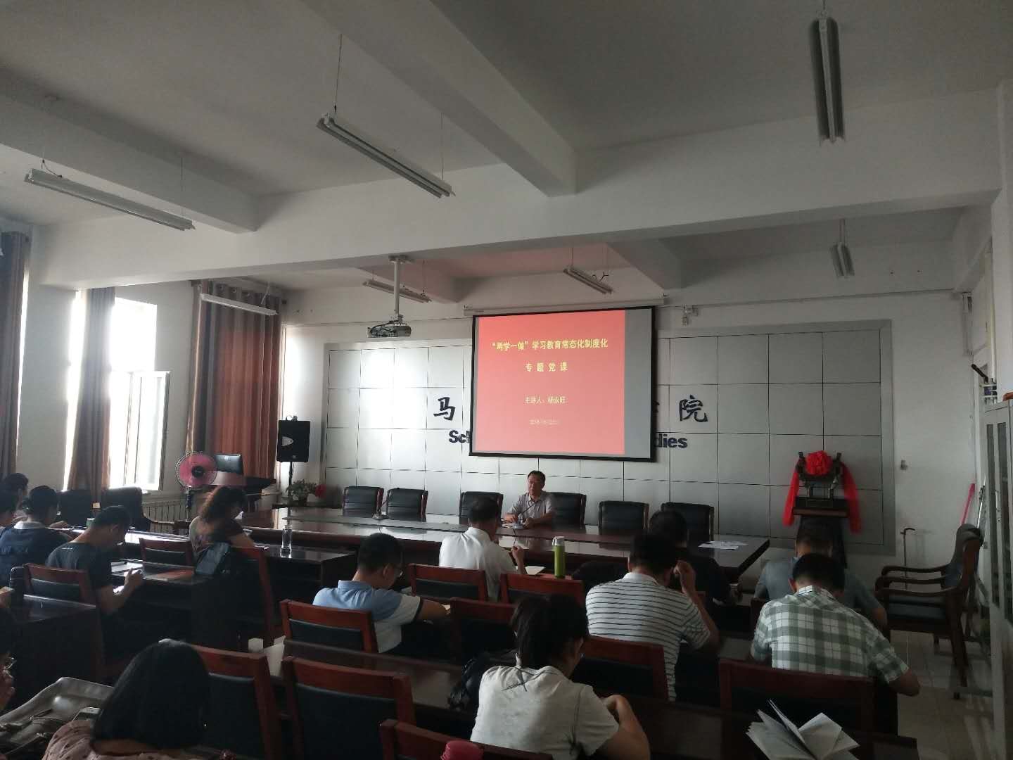 8月23日下午2:30,英国365集团公司党总支副书记杨永旺同志在学院会议室C517讲授了题为《遵守党的纪律,保证党的先进性》的专题党课,全体教工党员参加了此次党课学习。