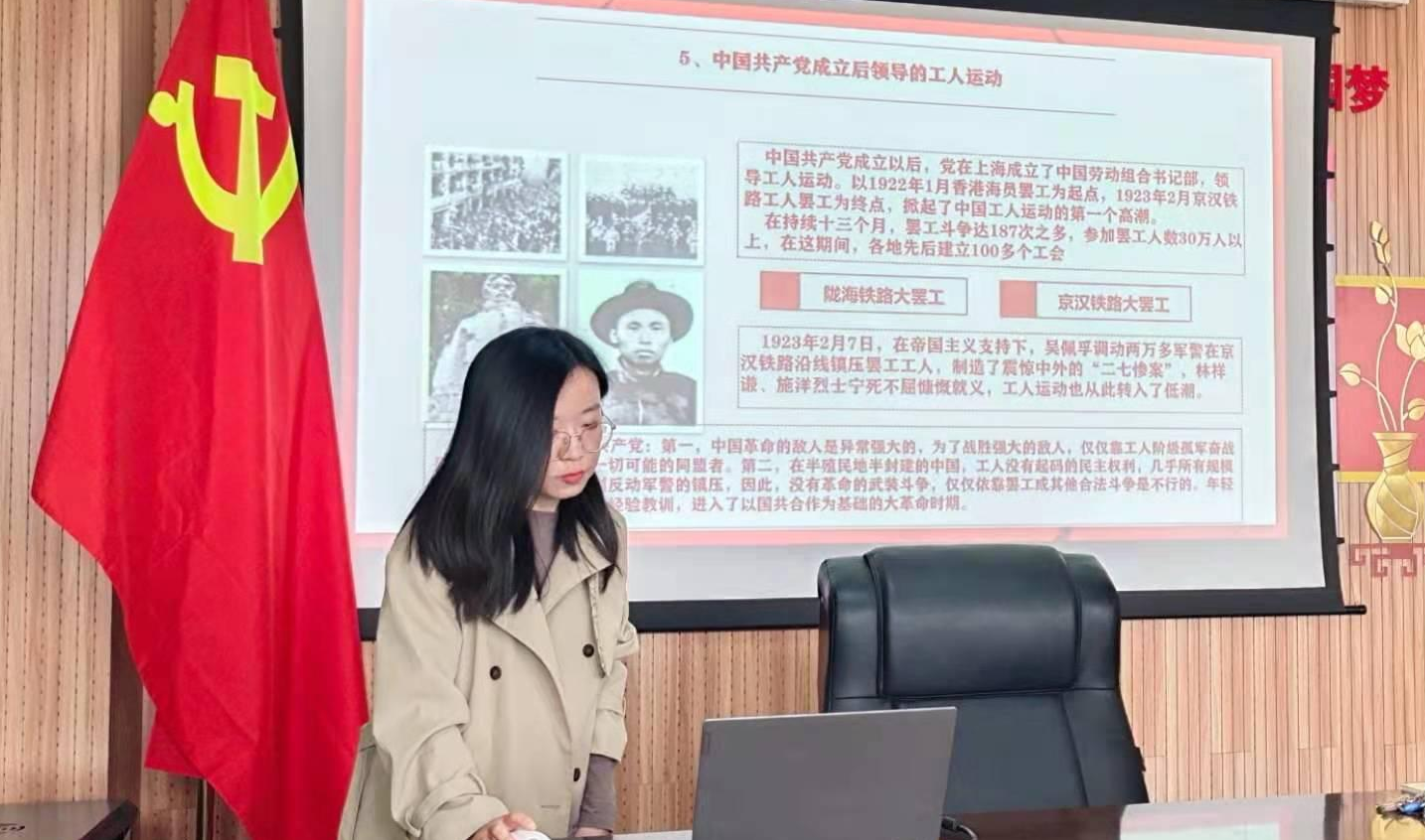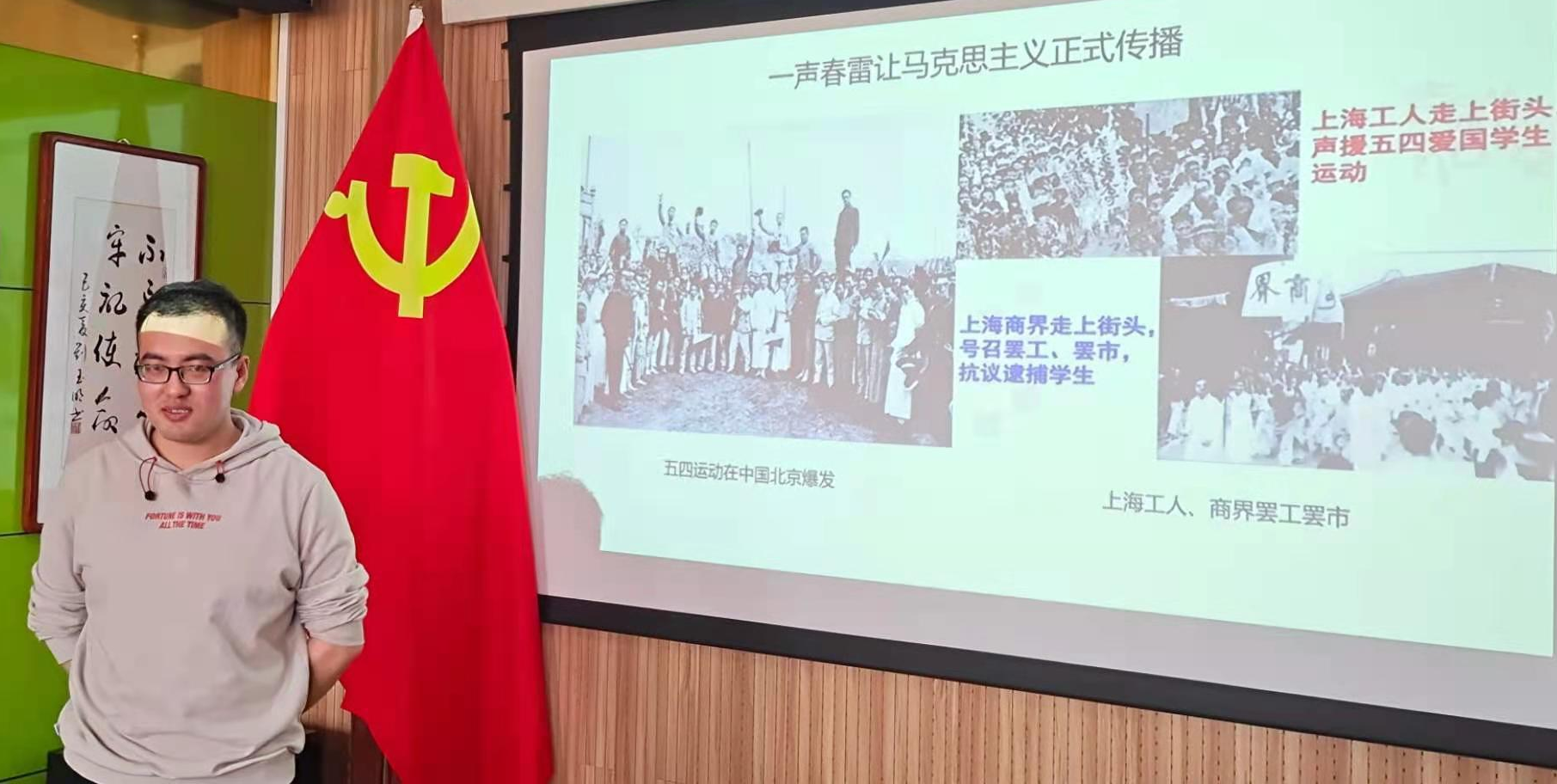 会上,党支部书记韩静静介绍马克思主义在中国早期传播的历史背景以及马克思主义队伍,解读不甘屈服的中国人民为了救亡图存一次次抗争一次次失败、又一次次奋斗的久经磨难的爱国主义民族精神,最后揭示“马克思主义为什么行”“中国共产党为什么能”“社会主义为什么好”,强调新时代研究生要居安思危、登高望远,以饱满的热情去勇担新时代赋予的历史使命。